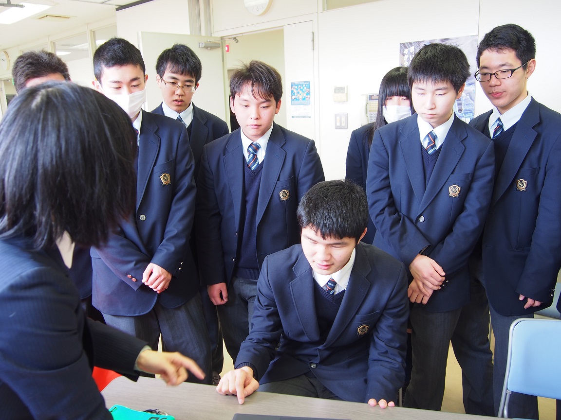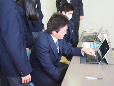 (県警サイバー犯罪対策課の担当の方から指導を受ける部員)