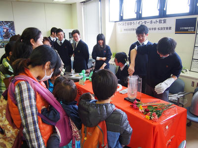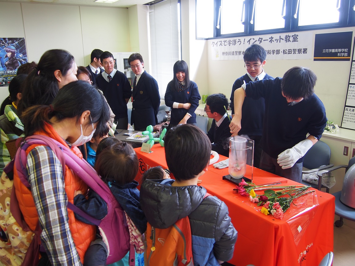 松田警察署と合同のブースで、インターネット教室とミニ実験ショーを行いました。