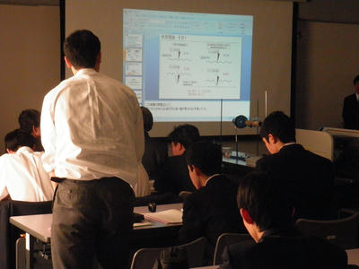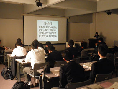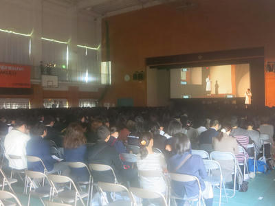 今回は後ろの方からでもよく見えるように、ビデオカメラとプロジェクター、スクリーンを使って生中継をしました。
